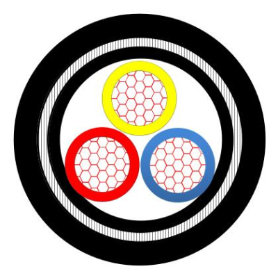 Three cores armored electrical cable is used underground directly for supplying power to office building, factory, hospital etc.
